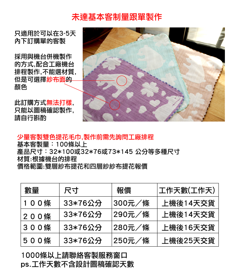 毛巾客製服務窗口:業務部-黃小姐、吳小姐 05-6220559 客製服務E-mail:sl-textile@umail.hinet.net 雲林縣虎尾鎮埒內里84-1號