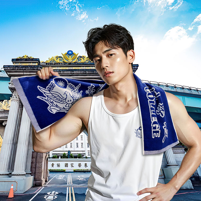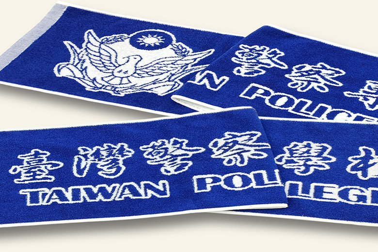 客制工藝:藍白雙色緹花運動巾