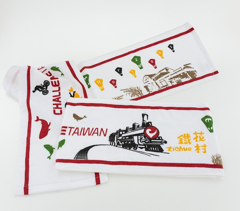 6.毛巾印花無白色顏料,因此不能深色毛巾印淺色,白色部分需以留白方式呈現,留白部分越多的毛巾,手感越好,相反的,印製面積越多的毛巾手感會越不好,請自行斟酌