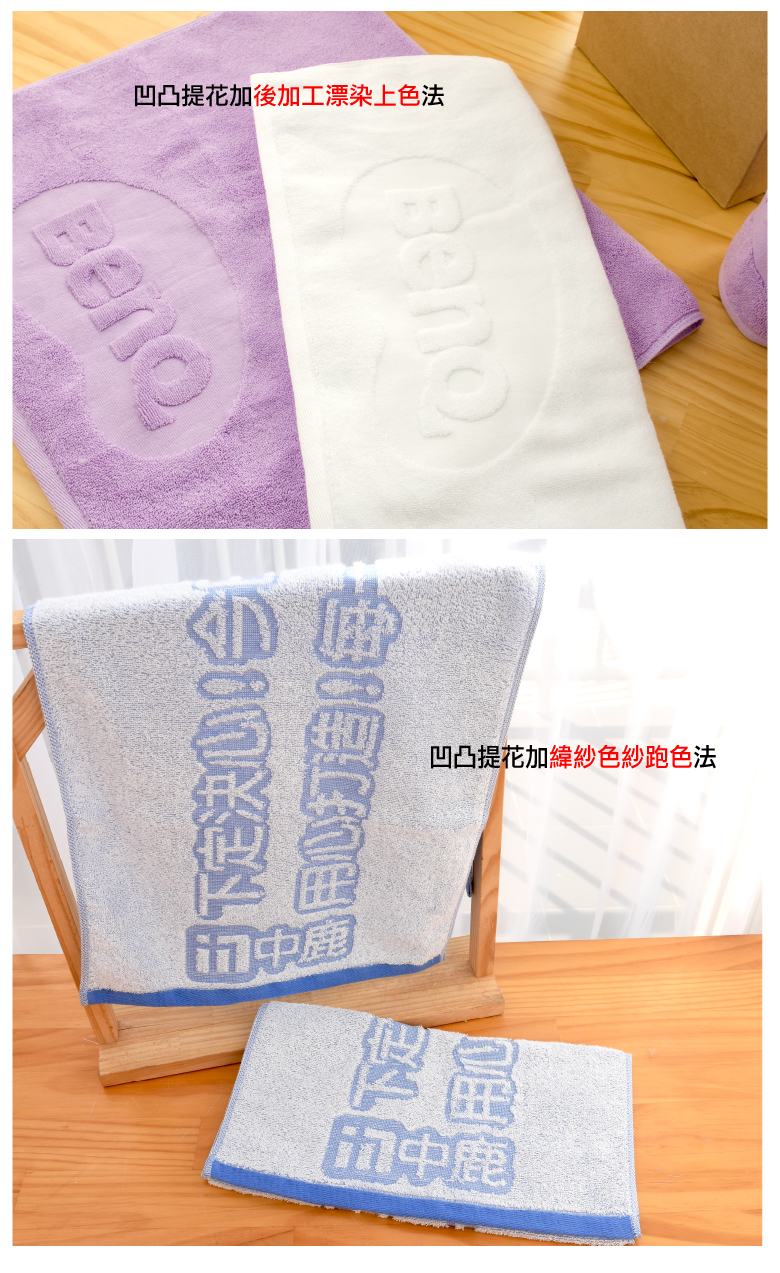 少量客製雙色提花毛巾,製作前需先詢問工廠排程
